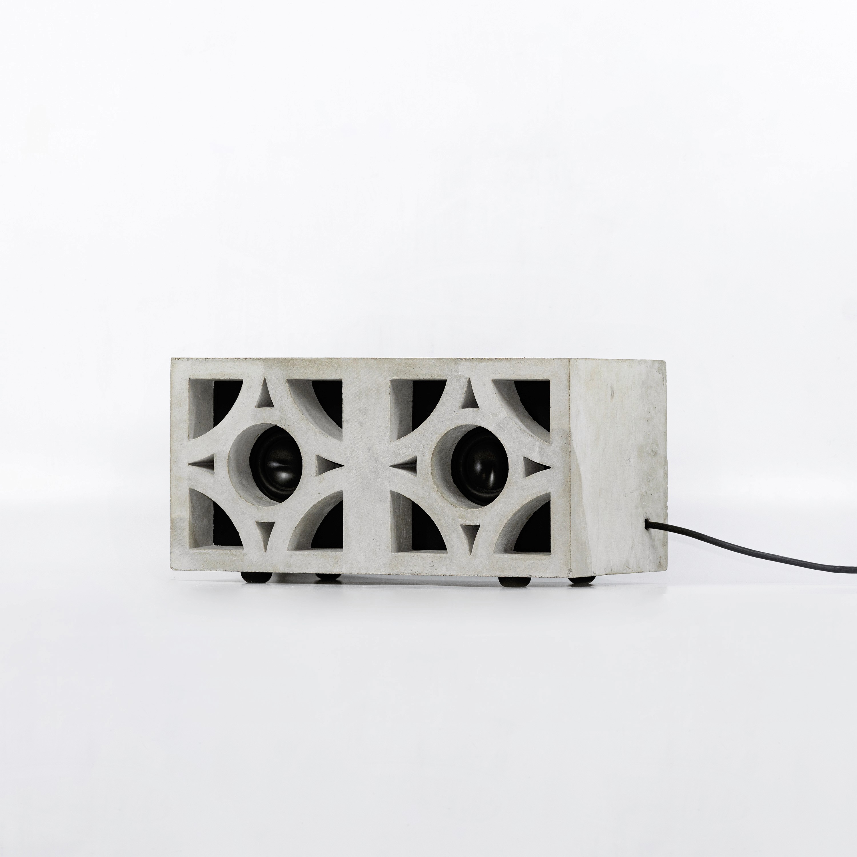 The breeze block is a stereo developed with peer Benno Schmidt. Generated from an ideation session that mashed disparate concepts, the stereo began simply as a “brick + speaker” and progressed into a market ready product, operating by aux. or bluetooth. The grille's motif was found in the streets of Montreal, Canada. The pattern is quintessential of mid century modern breeze blocks, possessing four way symmetry and simple geometric shapes.